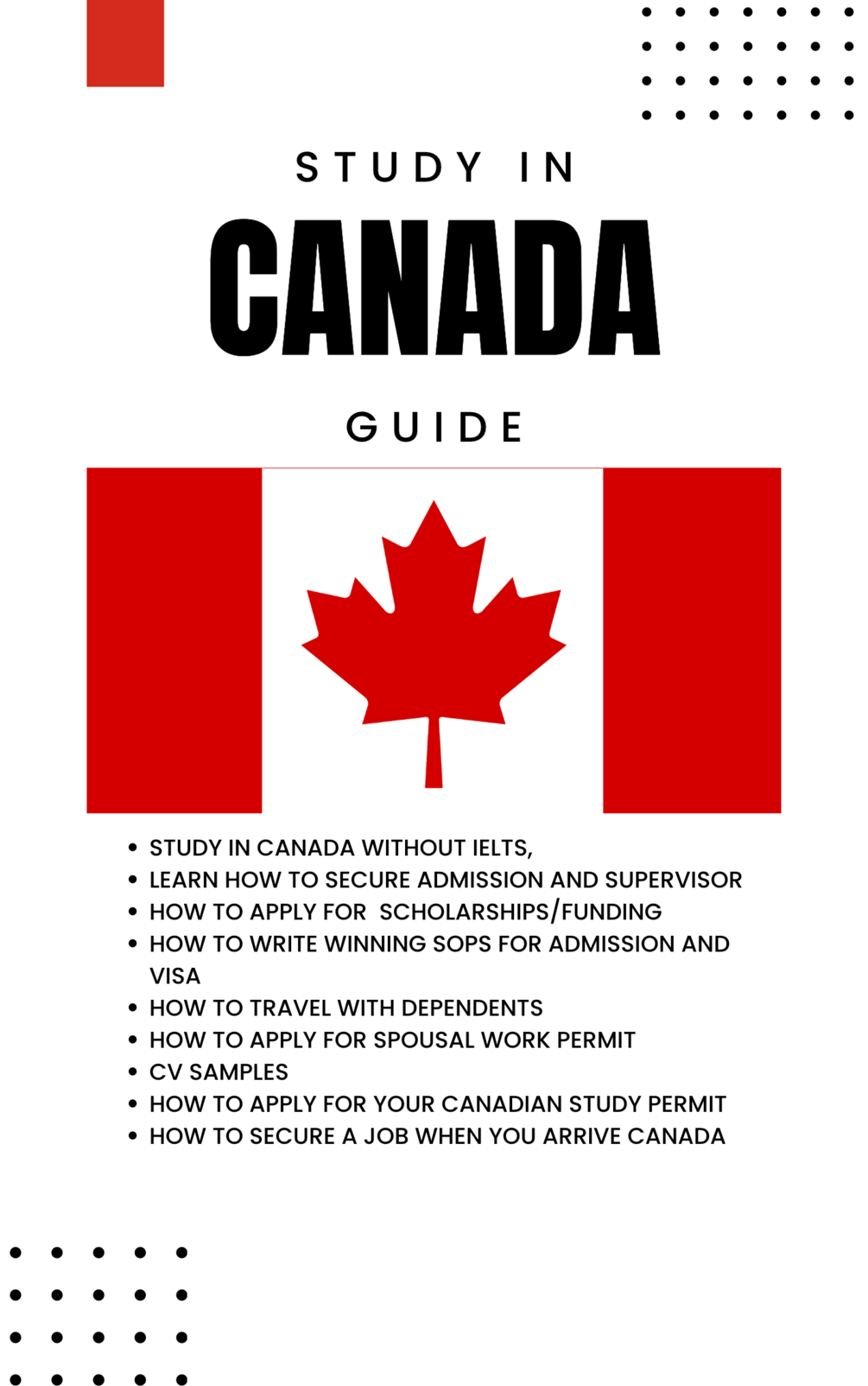 This guide provides detailed materials including videos and documents that help you achieve your study in Canada dream. With this guide, you would be able to learn the following: